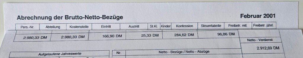 Doch mit meiner ersten Lohnabrechnung war ich ganz und gar nicht unzufrieden, ich bekam 2.912,69 DM und das war gar nicht mal so schlecht. Willkommen im Wachgewerbe – die Stunden machen das Geld. Der Stundenlohn mag noch so schlecht sein, wenn man eine Menge Stunden schiebt – über 200 – dann kommt man auch mit einem niedrigen Stundenlohn auf einen ordentlichen Nettolohn. Nicht zu vergessen, die steuerfreien Nachtzuschläge für Nacht,- Sonntag- und Feiertagsarbeit. Im August habe ich 3.646,03 Mark verdient. Summa summarum, es kommt eine Menge zusammen.